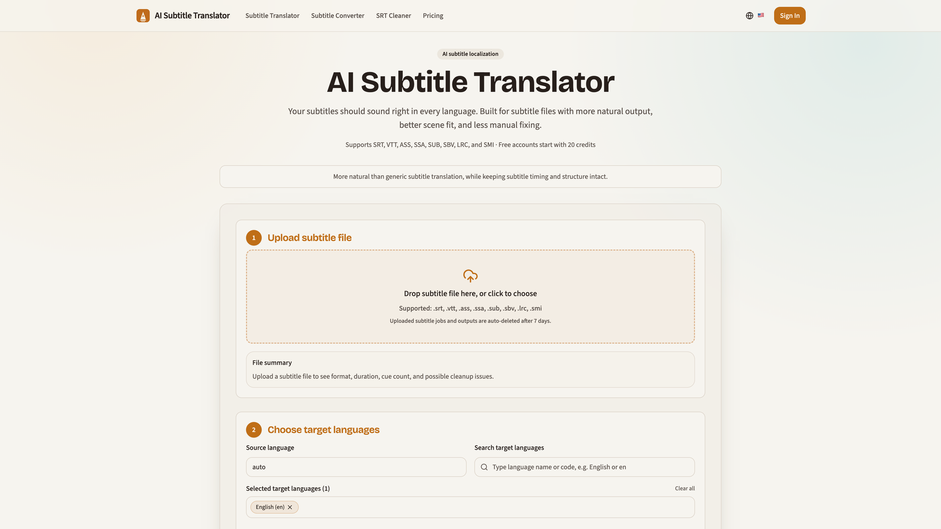 AI Subtitle Translator is a specialized localization tool designed for translating subtitle files. It focuses on producing translations that sound natural and fit the context of the scene, moving beyond literal word-for-word conversion to create subtitles that are closer to being publish-ready.