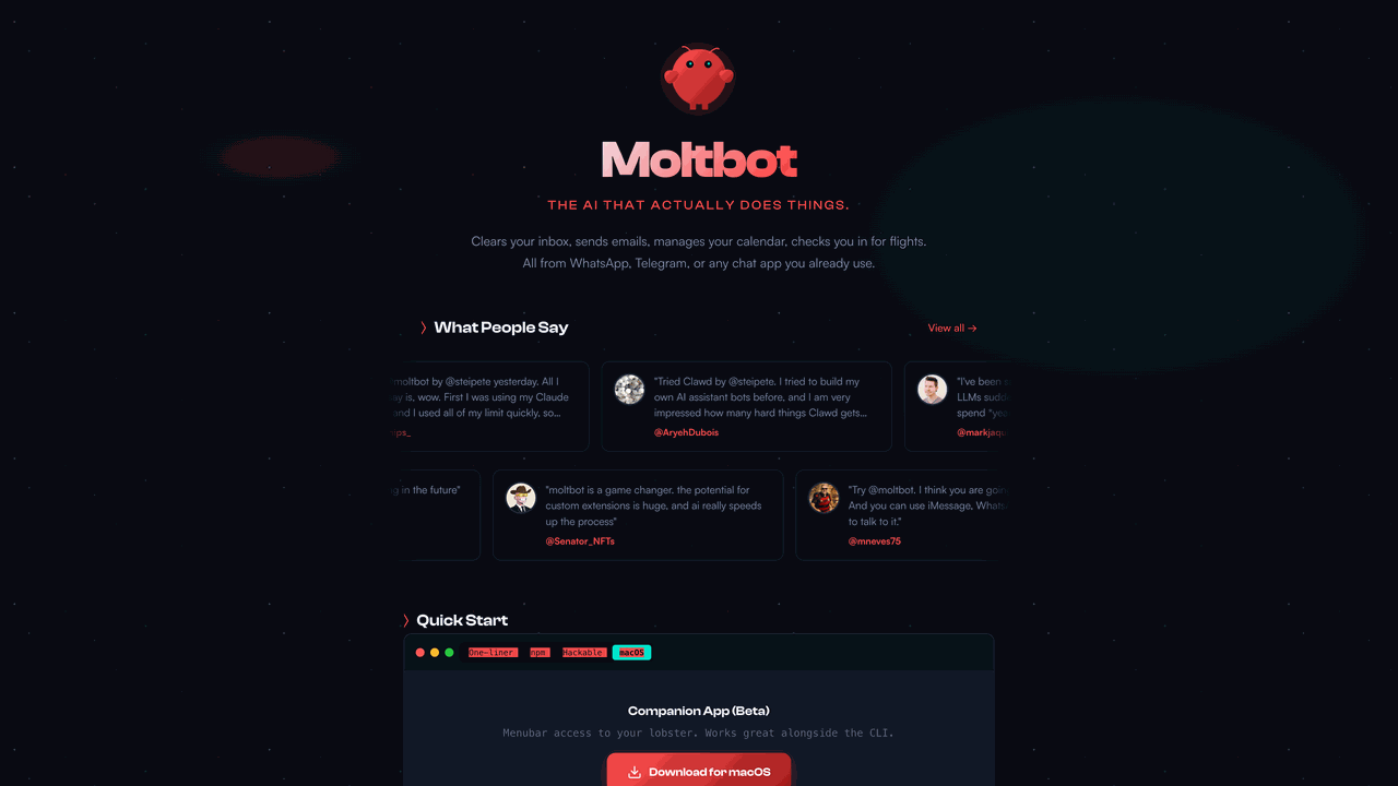 Moltbot is a personal AI assistant designed to run directly on your own devices (Mac, Windows, or Linux). It's not a cloud service; it's a private AI that operates from your machine, ensuring your data stays yours by default.