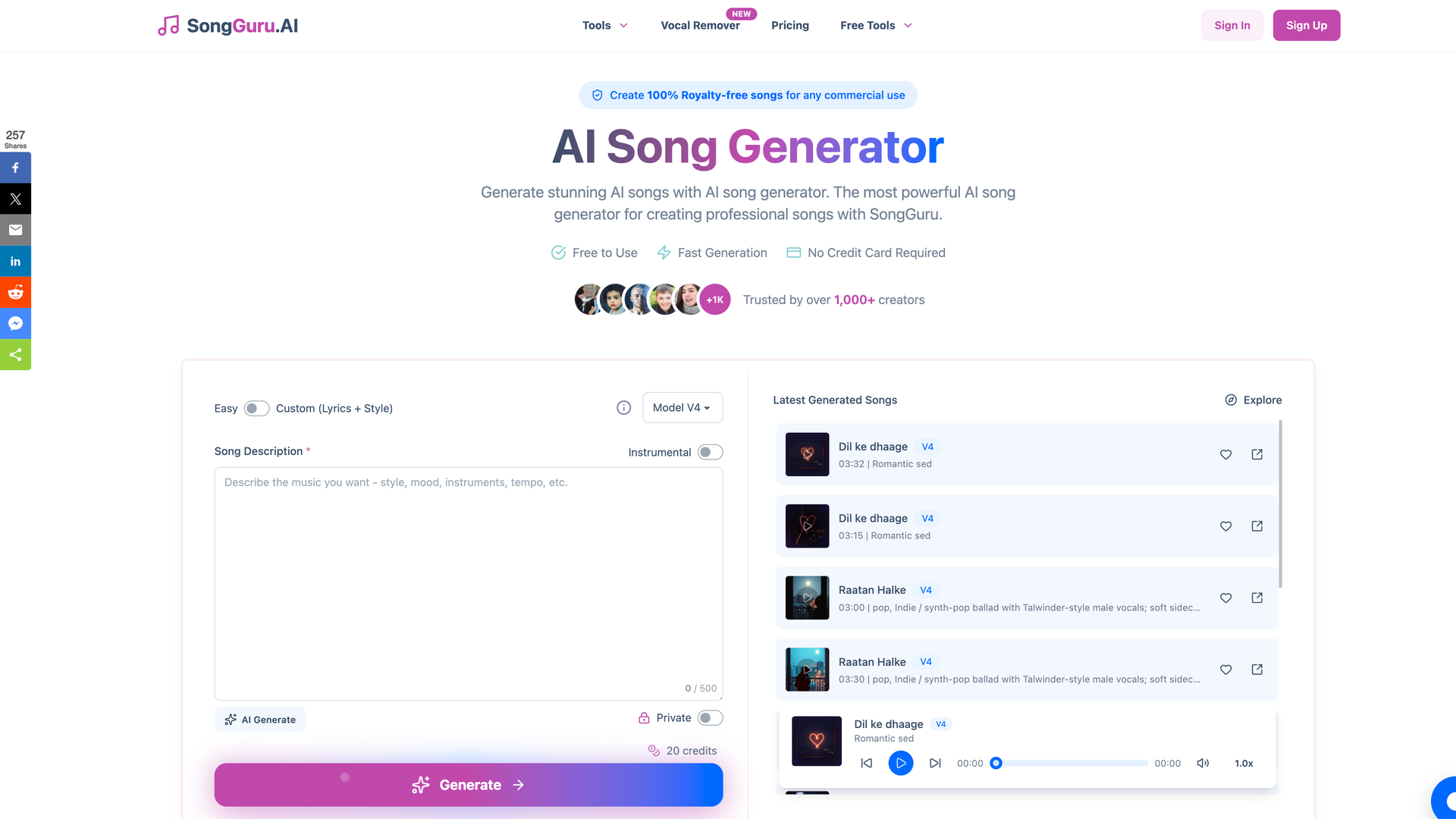 Is SongGuru.AI really free to use?